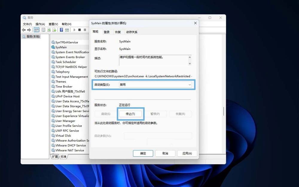 通过「服务」关闭并禁用 SysMain 服务