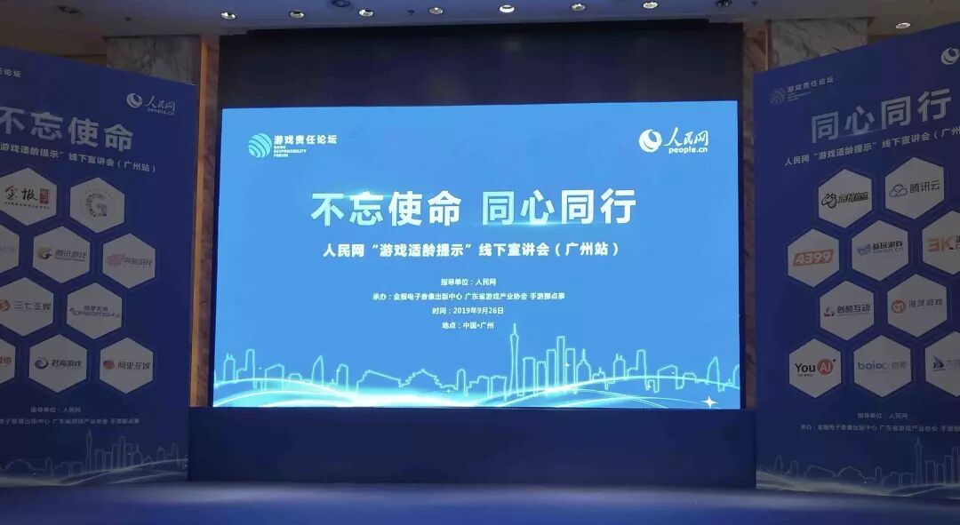 2019年9月26日下午,由人民网指导,金报电子音像出版中心、广东省游戏产业协会和手游那点事联合承办的“不忘使命,同心同行 ”人民网游戏适龄提示线下宣讲会广州站圆满举办。人民网在现场公布了“游戏适龄提示”统一标识、第一批标记的游戏以及第三批参与的企业和产品。至此,已有23家头部游戏企业参与游戏适龄提示。