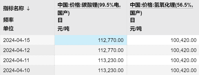 碳酸锂期货2404合约跌0.58%,至11.125万元/吨。