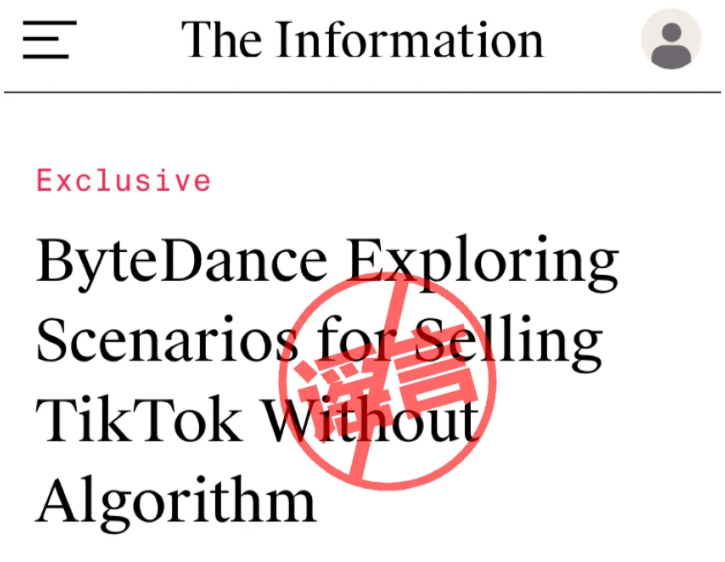 #字节跳动:“公司探索出售 TikTok”消息不实,无任何相关计划(IT之家)字节跳动今晚通过官方头条号发布声明:外媒有关字节跳动探索出售 TikTok 的消息不实,字节跳动没有任何出售 TikTok 的计划。此前,“外媒”报道称字节商讨出售 TikTok 美国业务多数股权,并声称“沃尔玛或为最理想买家”。