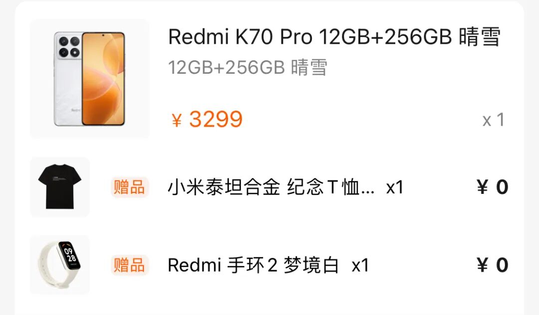 现在买就送红米手环 2(黑白两色可选),还送果子上面写的那件价值 99 元的“泰坦合金T恤” 。