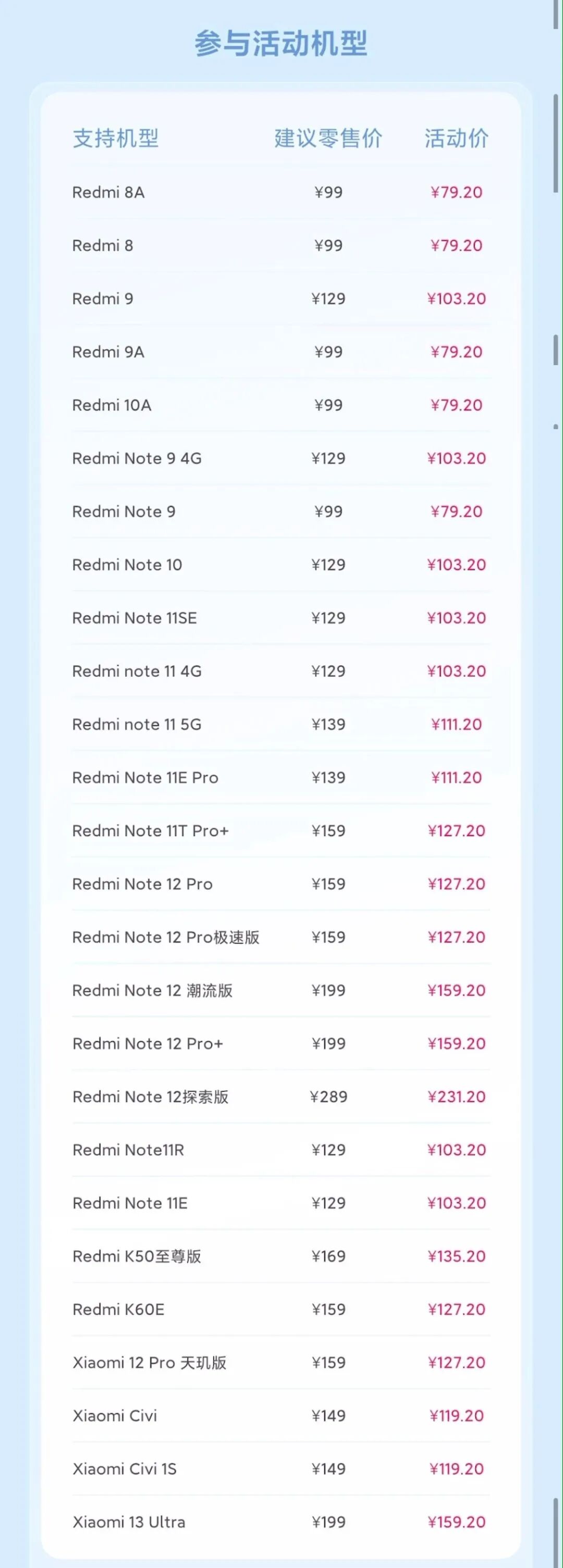 除此之外!还有 26 款老机型电池 8 折换新服务: