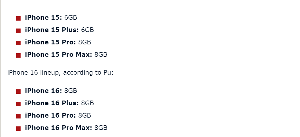 预期基本款 iPhone 16 、iPhone 16 Plus 存储器将升级为 8GB RAM,iPhone 16 Pro 系列存储器就算维持 8GB RAM