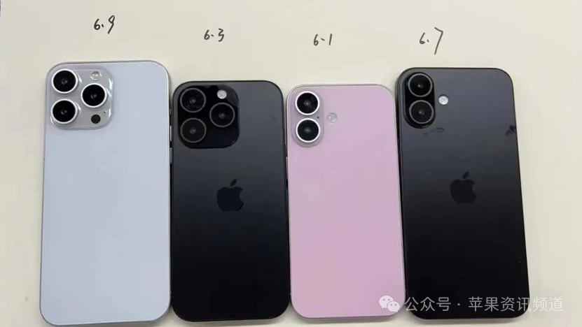近日,有爆料者在 X 社交平台上晒出了 iPhone 16 系列四款机型的机模对比图,为我们提前揭秘了新一代 iPhone 的尺寸和外观设计。