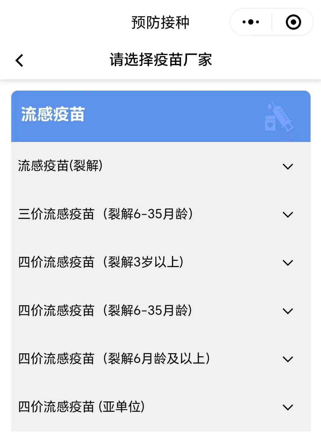 根据红星新闻报道,多省份流感疫苗情况跟广东类似,自费很难打到三价的。合肥、西安、昆明等地三价可预约的接种点均远少于四价。湖南省疾控公众号的预约页面也只有四价裂解疫苗可选。