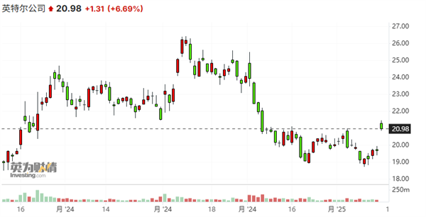 受这一消息影响,英特尔美股早盘明显拉升,最高时涨9.5%报21.54美元,为2024年12月6日以来的最高水平;现涨幅有所收窄,报每股20.98美元,涨幅为6.7%,总市值约为900亿美元。