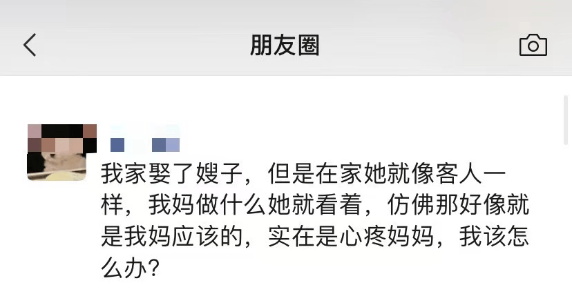 “我家娶了嫂子,但是在家她就像客人一样,我妈做什么她就看着,仿佛那好像就是我妈应该的,实在是心疼妈妈,我该怎么办?”