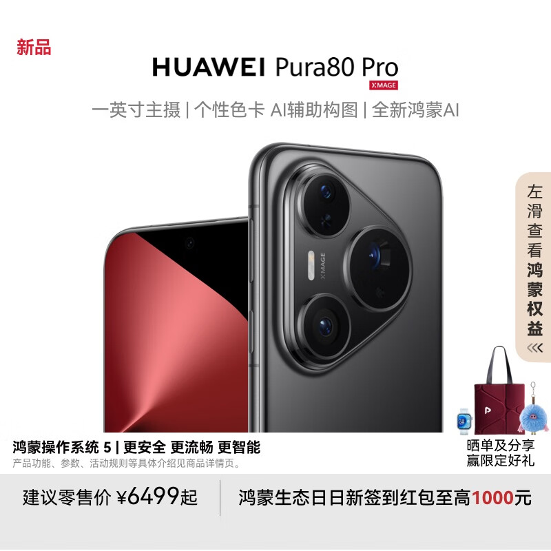 京东HUAWEI Pura 80 Pro 一英寸主摄 个性色卡 AI 辅助构图 华为鸿蒙智能手机 釉黑 12GB+256GB