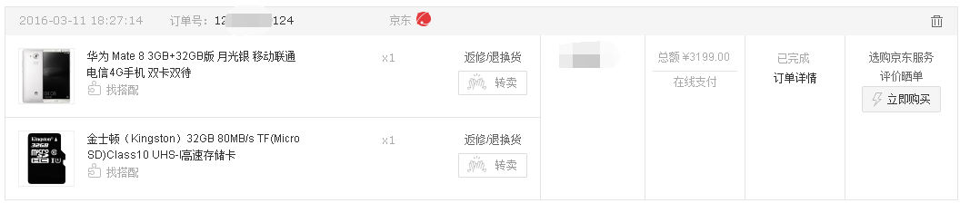 期间换了mate8试试,因为emui字大,我是近视,这回做一回花粉,狗东入手,送了64g 的TF卡,去年这个时候,mate7依旧是没货的状态,现在mate8在天猫都降价了,看来mate8的热情没mate7那么高涨。