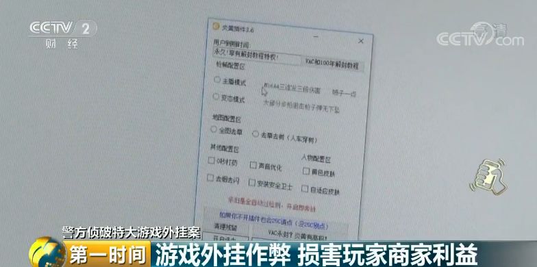 江苏灌云县公安局网安大队民警 掌云龙:游戏外挂是通过改变原有软件的部分功能,制作而成的作弊程序,实现游戏中原本不具备的功能
