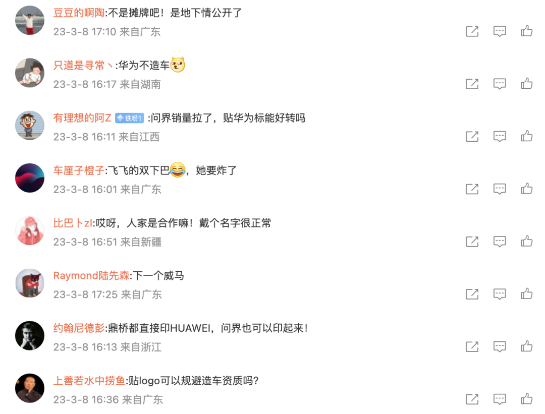 对比,有网友戏称,AITO汽车悄悄使用“HUAWEI问界”措辞取代了此前的AITO问界,是不是以后要挂华为标了,同时也再次引发了华为是否已主导问界汽车的猜测。也有行业人士认为,“HUAWEI问界”可能是华为生态汽车联盟的品牌名字,并不是传统意义上说的华为造车。“AITO问界”变成了“HUAWEI问界”可能只是生态的第一步。